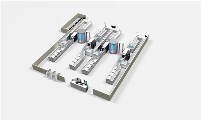 德利研發全新的旅客隨身行李系統,推出全新的智能安檢方案,旨在將傳統的安檢系統升級為便捷、高效、舒適、美觀、安全性更高的一體化智能系統,帶來全新的安檢體驗,減少安檢人員的體力勞動,使人員分工更加明確,安檢流程更加規范,安全性更高。單獨放包:旅檢系統為旅客提供了單獨的放包位,旅客在準備安檢包裹時將避免擁擠干涉的環境,不再有”催促感。自動供筐:引導員無需為待檢旅客提供空筐,節省工作人員勞動強度,將更加專注于引導旅客關于鋰電池類物品的放置。自動分揀:判圖員只需在計算機上操作,便可將可疑行李快速分揀到開包臺,無需工作人員口頭命令旅客開包檢查。人包綁定:旅客航班信息、人臉信息與行李信息進行唯一綁定,實現人包對應”,為開包檢查與后期查詢提供數據支持。空筐識別:系統對過檢的空筐進行識別。非空筐等待,空筐則自動回收,無需工作人員處理。自動復檢:開包檢查后的行李會自動回傳至待檢輸送線上,自動進入安檢機,無需工作人員往復走動。旅客隨身行李處理系統(全功能版) -