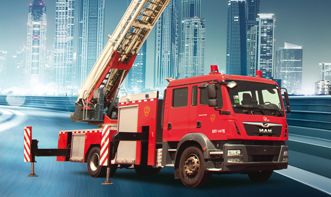 本產品采用德國曼汽車集團公司生產的TGM18.290二類底盤改裝而成。此車配備可承載2+7人式乘員室,旋轉階梯腳踏設計;器材廂、泵房采用全鋁合金板式結構制作而成,一體化、輕量化設計,搭接式、無焊接制作工藝,無應力集中變形,整車使用壽命長。其水罐采用內藏可拆卸式,水泵采用后置安裝,外觀新穎,結構緊湊,操作維修十分方便。該車裝載滅火劑量大,車速快,是石油化工企業、輸油碼頭、油田油庫、機場以及大中城市專職消防隊和企事業消防隊必備的消防主戰車輛。