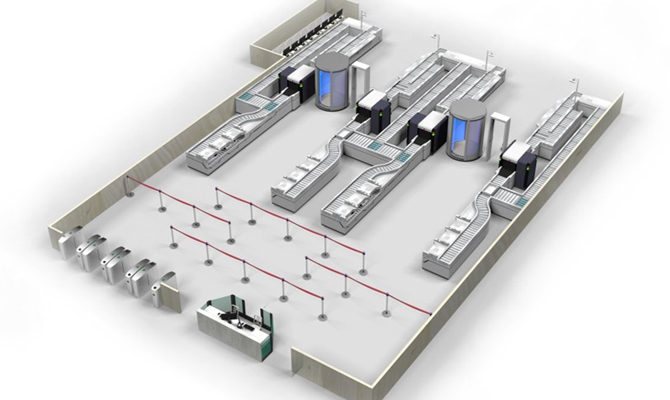 • The intelligent passsenger checkpoint system designed by Pteris global can be optional for requirement of the customers , with system function and spatial layout in mind , the customer design plan can be made , with optional function of face recognition . The number of tray divestment module from 3 to 6 , the highest effciency for throughout : 600 persons /hour (the ratio of person to tray equal to 1:1.5)