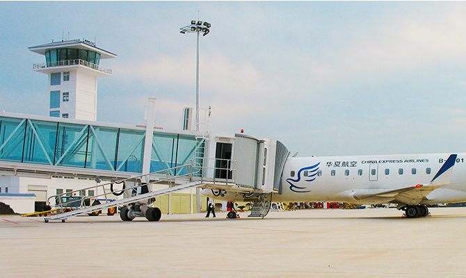 The main components of the L-shaped horizontally-shifting telescopic passenger boarding bridge are: joint building, rear door frame, side-by-shore telescopic road, front door frame, land side lifting mechanism, vertical bank expansion channel, sea side lifting mechanism, walking mechanism, and ship receiving Mouth, repair ladder, etc. Compared with other forms of boarding bridges, the L-shaped transverse boarding bridge has a wider range of activities and a wider adaptability, which can adapt to different parking positions. The traveling mechanism is an orbital overall traverse, driving the boarding bridge to achieve horizontal movement in parallel with the waiting ship building on the platform; 2 sets of lifting mechanism enable the boarding bridge to achieve height direction movement, so that the ship receiving port and the service The various cruise door doors are highly adaptable.Small aircraft boarding bridge -