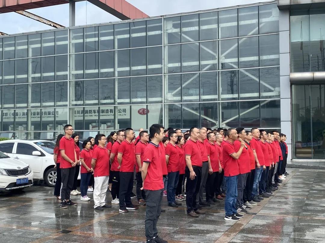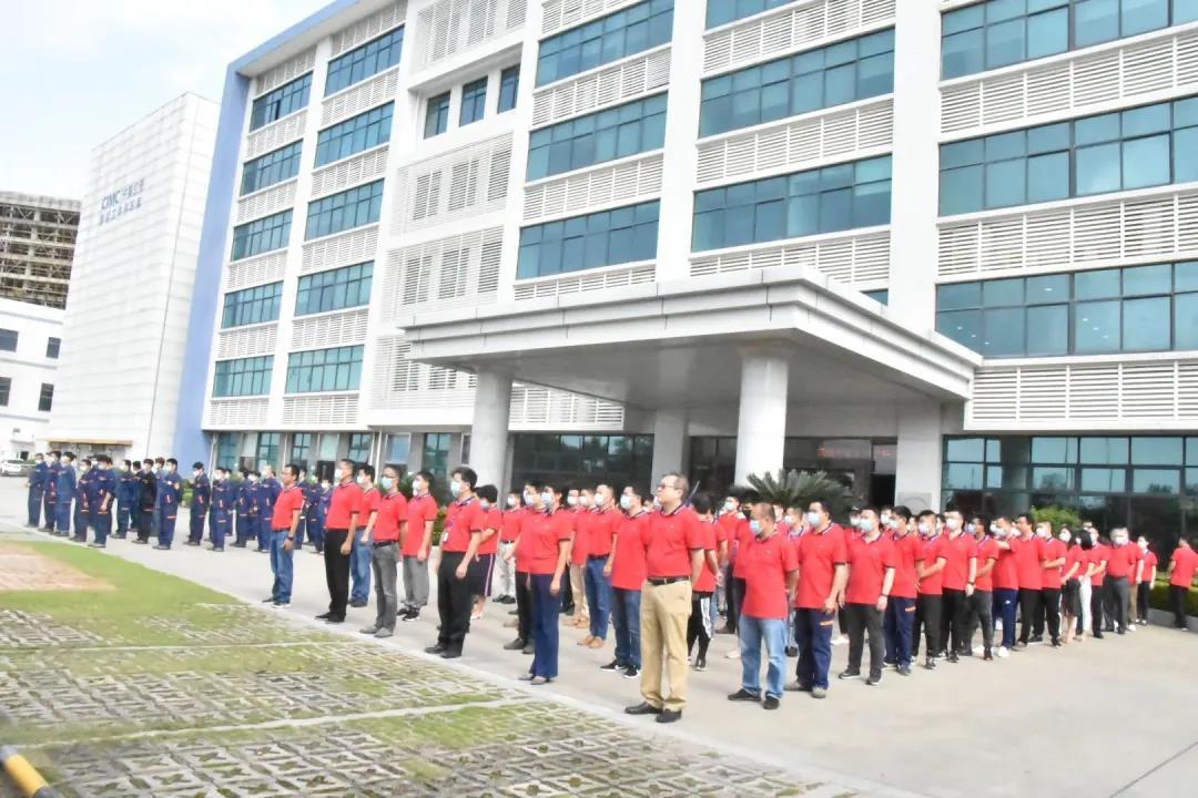 整齊的隊列展示良好的精神風貌,心懷對偉大祖國克服疫情的美好祝愿和對公司應對世界變局的殷切期盼,我們奏響國歌和中集之歌,放聲歌唱,攜手共進。