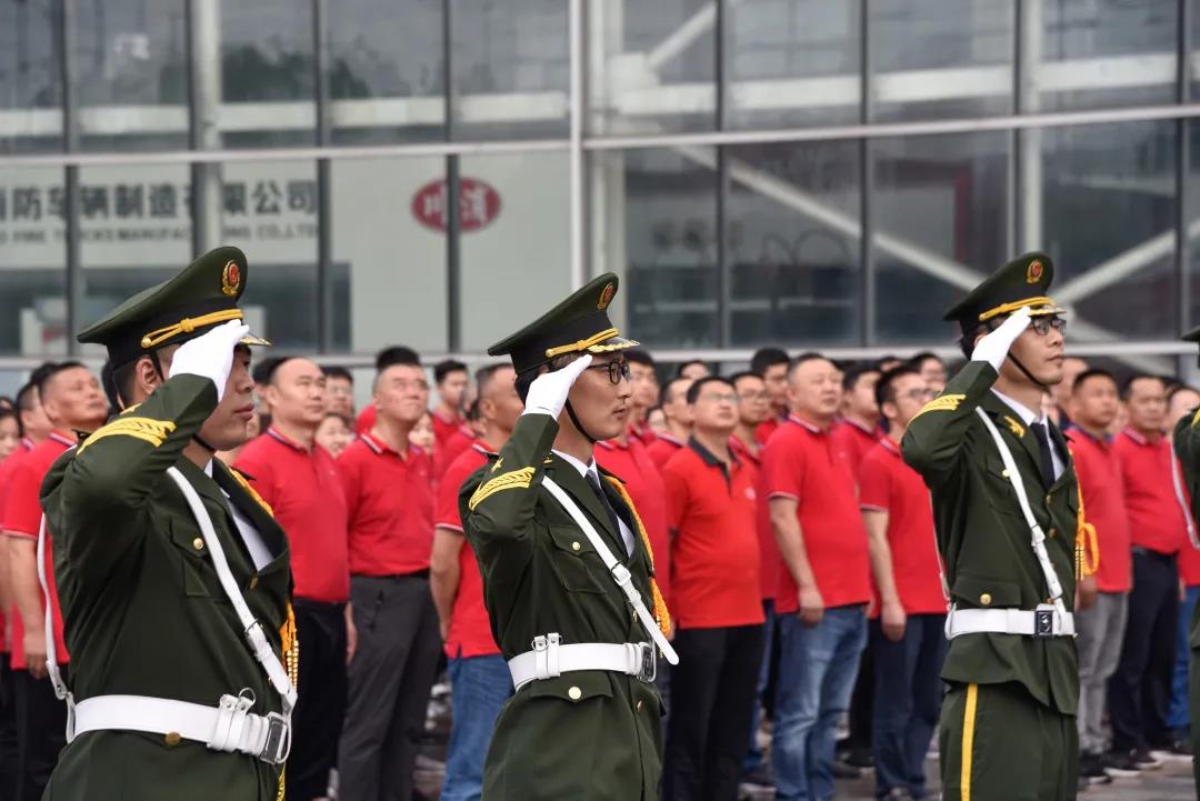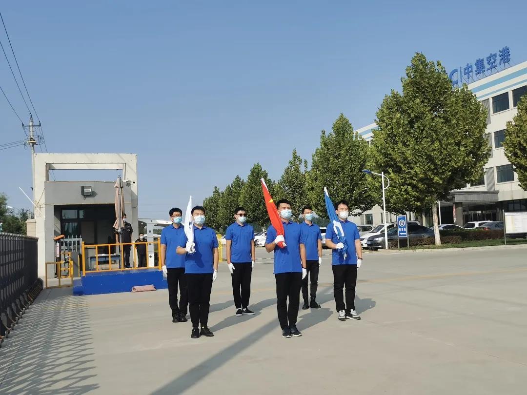 9點22分升旗儀式正式開始,護旗手們英姿颯爽的護送國旗、中集旗入場。在莊嚴的國歌聲中,鮮艷的五星紅旗冉冉升起,公司領導及全體員工精神抖擻,肅立行注目禮,熟悉而又慷慨激揚的國歌瞬間燃起了大家心中的愛國熱情。隨后在注目禮中,中集集團旗幟、中集天達司旗緩緩升起,隨風飄揚,發自肺腑的驕傲與自豪感油然而生。現在,讓我們一起來欣賞各公司的精彩瞬間!