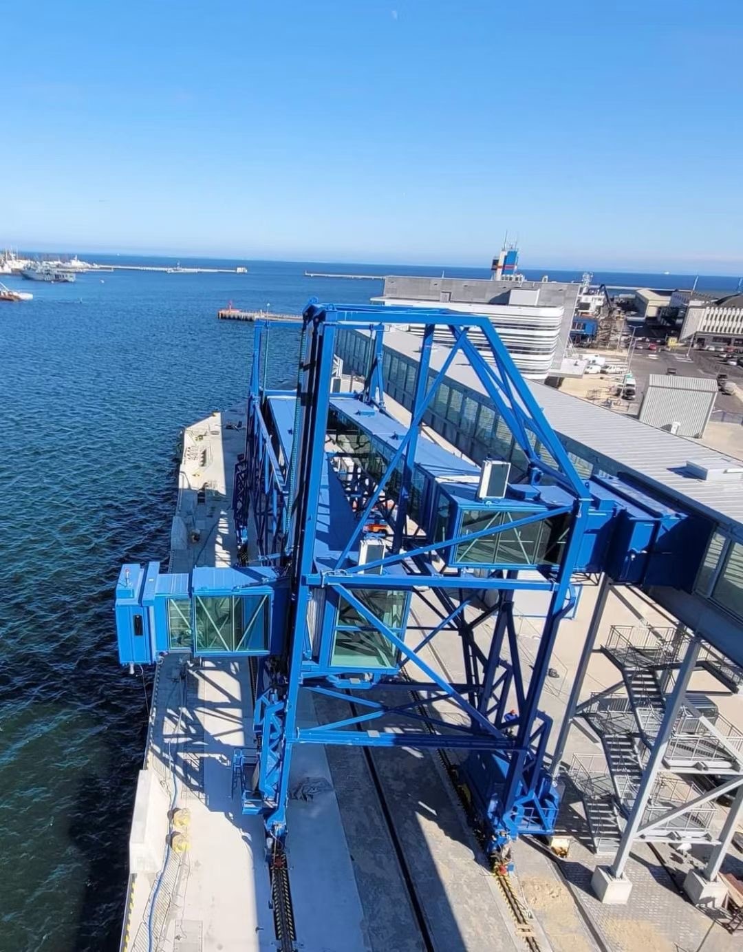 2021年6月,中集天達在波蘭格丁尼亞港順利交付了一臺軌道式順岸通道折返型登船橋設備(以下稱登船橋)。這是中集天達為格丁尼亞港量身設計并制造的客滾船系列旅客登船橋,也是在新冠疫情后正式交付的第一個國際港口旅客登船橋,意味著中集天達在旅客登船橋制造領域邁出了更為堅實的一步。此項目的順利交付,開啟了中集天達開拓歐洲登船橋市場的新篇章。