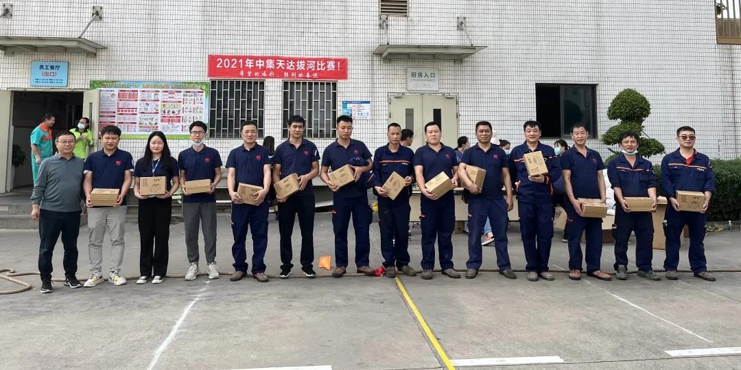 經過幾個小時的激烈角逐,最終由部件裝配2隊+技術部+技術委員會獲得冠軍,通道部裝隊+質量部+倉管部獲得亞軍,部件裝配1隊+服務隊獲得季軍,通道裝配1隊+行政管理部+信息管理部+HSE獲得優勝獎。由工會主席毛玉宏給冠、亞、季、優勝隊伍頒獎,由天達工會副主席周順華給各參賽隊伍頒發紀念獎。到此,2021年中集天達拔河比賽圓滿結束!