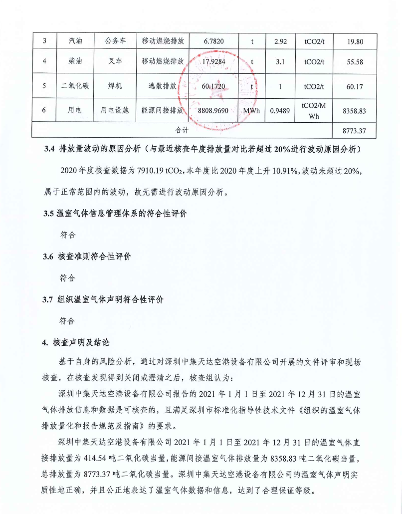 關(guān)于中集天達(dá)2021年度碳核查結(jié)果的公布