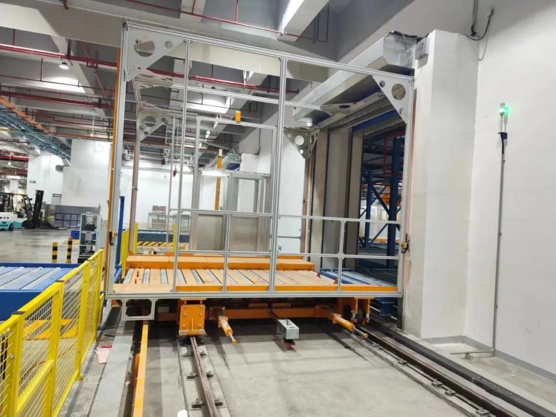 2套15英尺ETV(7噸級(jí)堆垛機(jī))、2套10英尺ULD提升機(jī)、710個(gè)6層10英尺雙深儲(chǔ)位(單儲(chǔ)位達(dá)14T)、3層3套共計(jì)4臺(tái)10英尺TV(7噸級(jí)穿梭車),除此之外,集裝貨處理系統(tǒng)還同時(shí)配套了300多臺(tái)輥道輸送機(jī)和20多臺(tái)升降分解組合臺(tái)。這些設(shè)備的組合應(yīng)用,將三層貨站綜合體構(gòu)建成智能化的航空貨物處理系統(tǒng),實(shí)現(xiàn)了集裝貨架區(qū)ULD水平傳輸、垂直倒運(yùn)和立體存儲(chǔ)功能。
