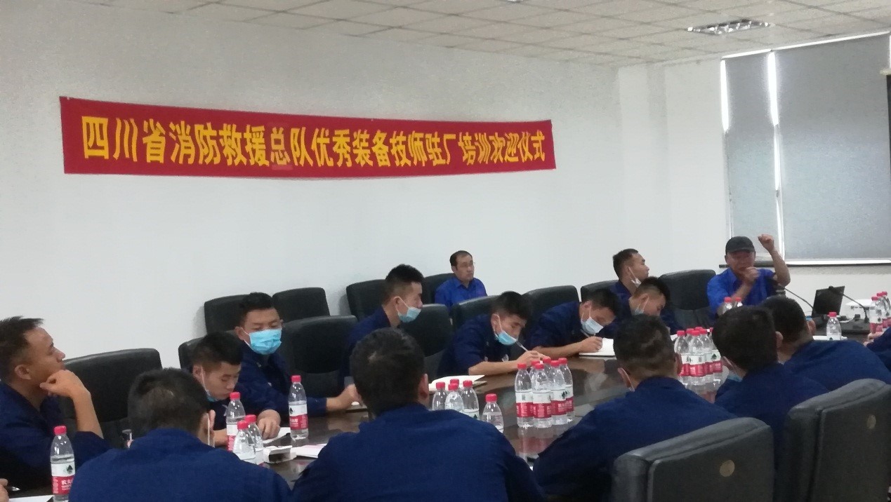 在四川培訓期間,消防服務總經理張海賓、川消技術中心主任唐海和分管生產的總經理助理張擁軍等領導全程負責,組織授課事宜,以實際問題為例,更加利于技師們的理解。在消防救援總隊官兵到車間、實驗室等地方參觀學習時,安排專業人員解答技師們的疑問,進行深入交流。