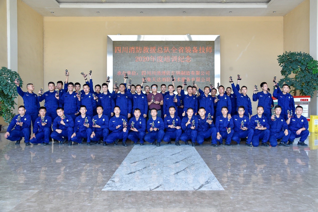 在2020年8月至9月初,中集天達控股旗下四川川消消防車輛制造有限公司(簡稱“四川川消”)、沈陽捷通消防車有限公司(簡稱“沈陽捷通”)、中集天達消防技術服務有限公司(簡稱“消防服務”)有幸成為主要培訓單位,為多批次四川省消防救援隊裝備技師提供專業化理論講解和實操經驗分享。